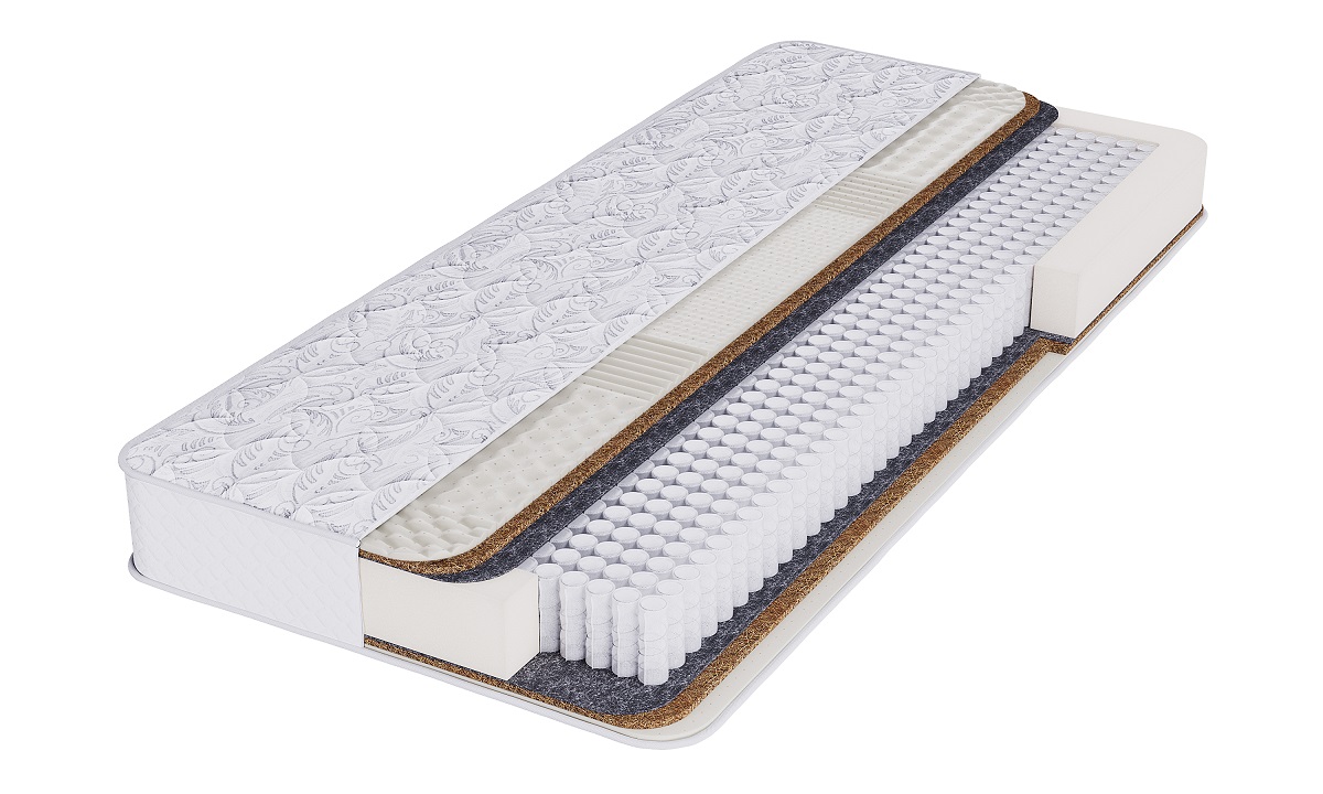 Комфортный слой изготовлен из современных материалов. Натуральная латексированная кокосовая койра обладает высокой прочностью и хорошо пропускает воздух, придает матрасу жесткость, долговечность, а 7-ми зонный латекс обеспечивает упругость и повышает комфортность спального места.