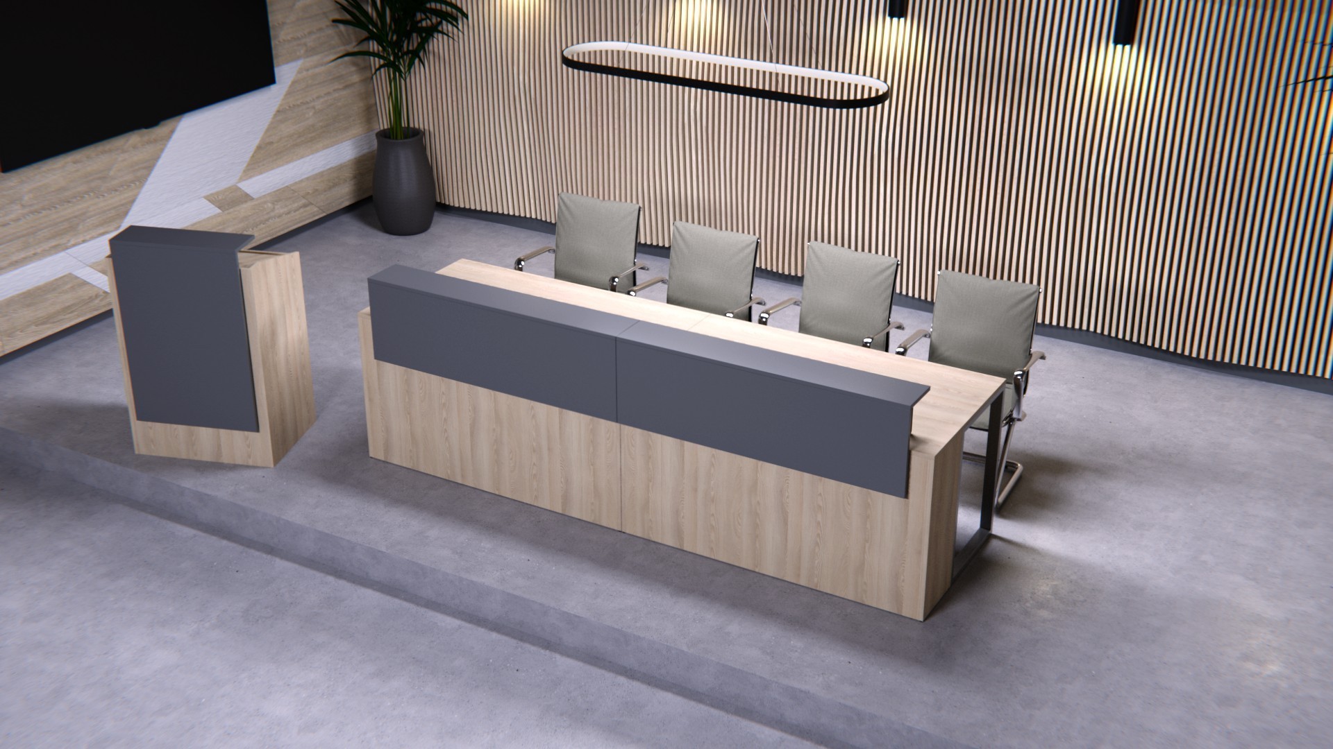 - Стол Президиум состоит из модуля с размерами 1400 x 850 x 950 мм – 2 шт.