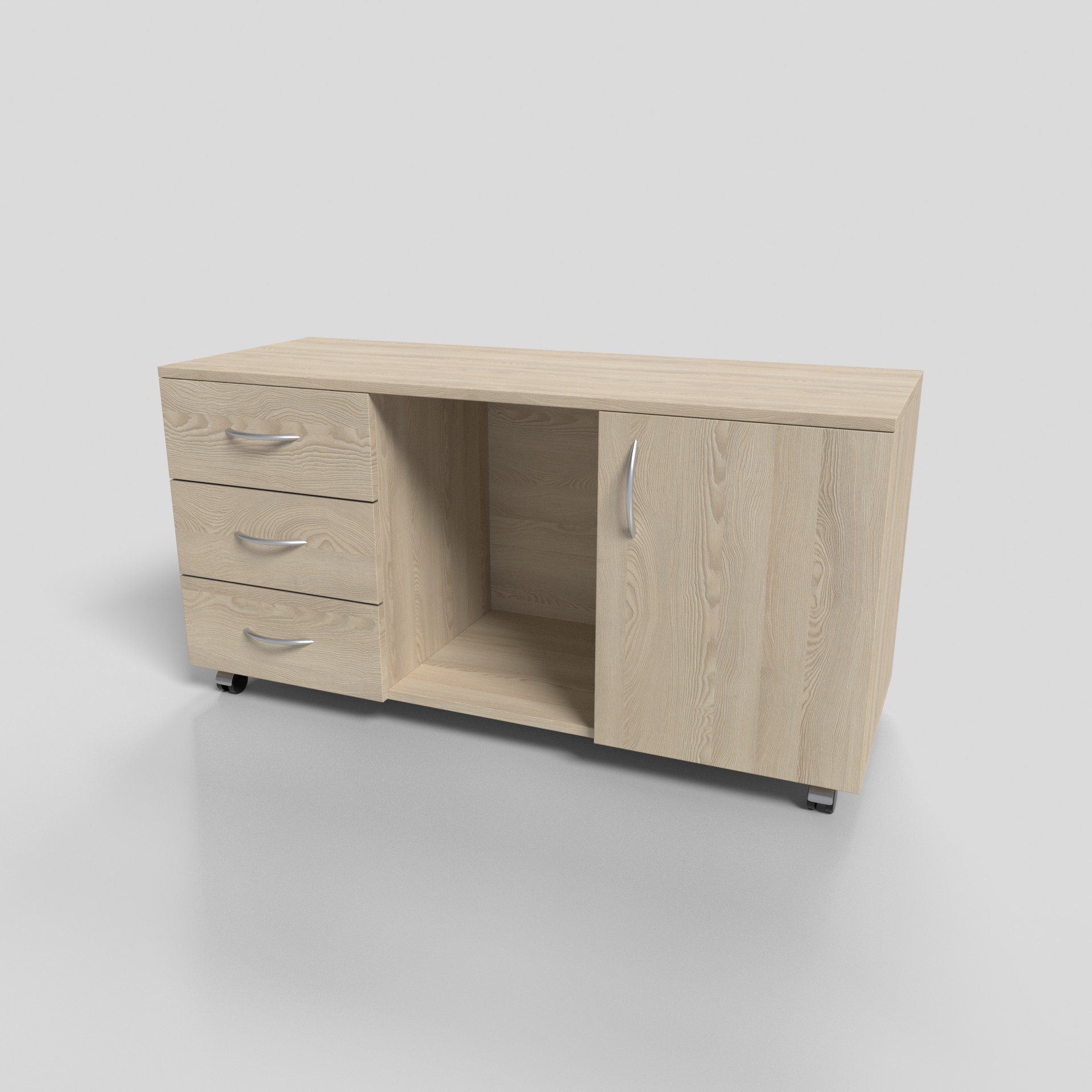 Тумба офисная комбинированная на колесах 1200х450х610 мм